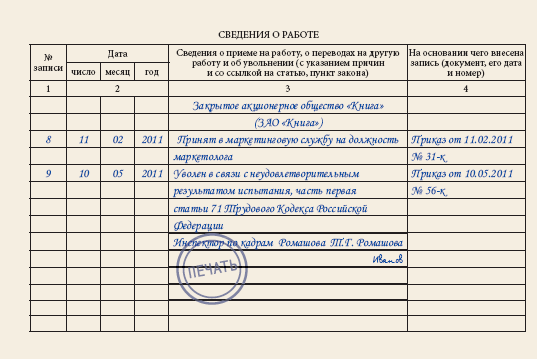 Печать в трудовой книжке