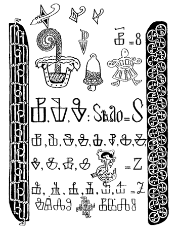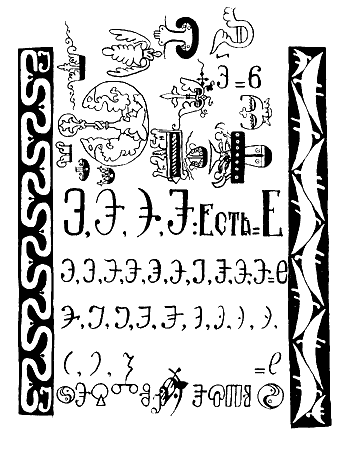 Многообразие смыслов русской азбуки плодотворно сказалось на художественном оформлении буквиц. Всматриваясь в буквы глаголицы, мы замечаем её очень замысловатые формы. Знаки глаголицы часто строятся из двух деталей, расположенных друг на друге.