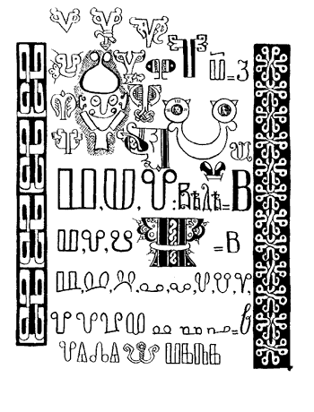 Замысловатость изображения букв заметна и