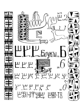 - В мире осталось всего пять памятников, написанных глаголицей. Остальные были уничтожены. Причем, по-моему, записи на глаголице были уничтожены намеренно, — считает профессор Николай Таранов. — Поскольку глаголица не подходила для записи церковных книг. Цифровое значение букв (а тогда очень сильна была вера в нумерологию) в ней было иным, чем требовалось в христианстве. Из уважения к глаголице Кирилл оставил в своей азбуке те же названия букв, что и были. И они очень-очень сложны для алфавита, «родившегося» в IX веке, как утверждается. Уже тогда все языки стремились к упрощению, буквы во всех алфавитах того времени обозначают только звуки. И только в славянской азбуке такие названия букв: «Добро», «Люди», «Мыслите», «Земля» и т. д. А все потому, что глаголица очень древняя. Она имеет множество признаков пиктографического письма.