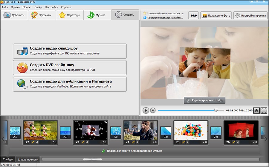 Скачиваем программу для создания видеороликов (слайд-шоу) на свой компьютер. Будем работать в программе ФотоШОУ Prо.