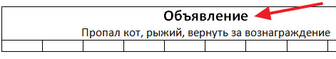 Если в объявлении не должно быть много написано, а нужен просто короткий текст, чтобы люди обращали на него внимание, тогда делаем следующие.