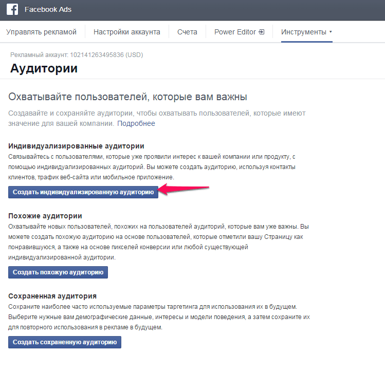 Для этого выбираем Создать индивидуализированную аудиторию.