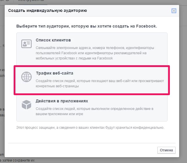 Во всплывающем окне выбираем Трафик веб-сайта.