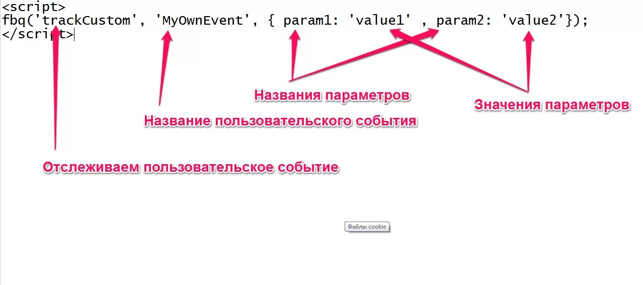 - Какие существуют параметры Событий? Параметры – это дополнительные куски кода, которые посылают важную информацию о событии. Вот несколько общих параметров, которые обычно использует Facebook: content_name — Название контента content_type — Тип контента content_category — Категория контента content_ids — ID контента value - Ценность (будет использоваться в отчётах о рекламных кампаниях для отслеживания цены за конверсию) currency — Валюта