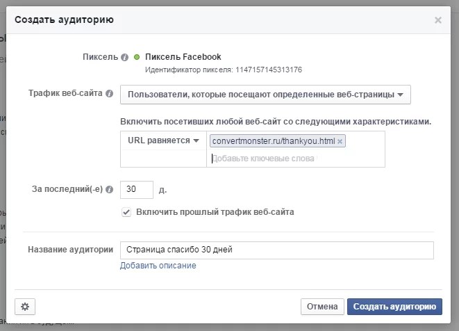Настройка пикселя Facebook